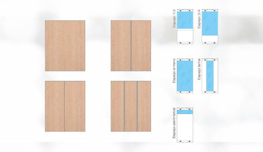 Espejo 1/2 Altura con Paños con separación-Inox, Cabina EI -1 con Espejo estrecho Lama y Paños Lisos-Inox, Cabina EI -2 con Espejo Estrecho Lama y Paños con separación-Inox, Cabina EI -3 Sin espejo con Paños Lisos-Inox, entre otros.